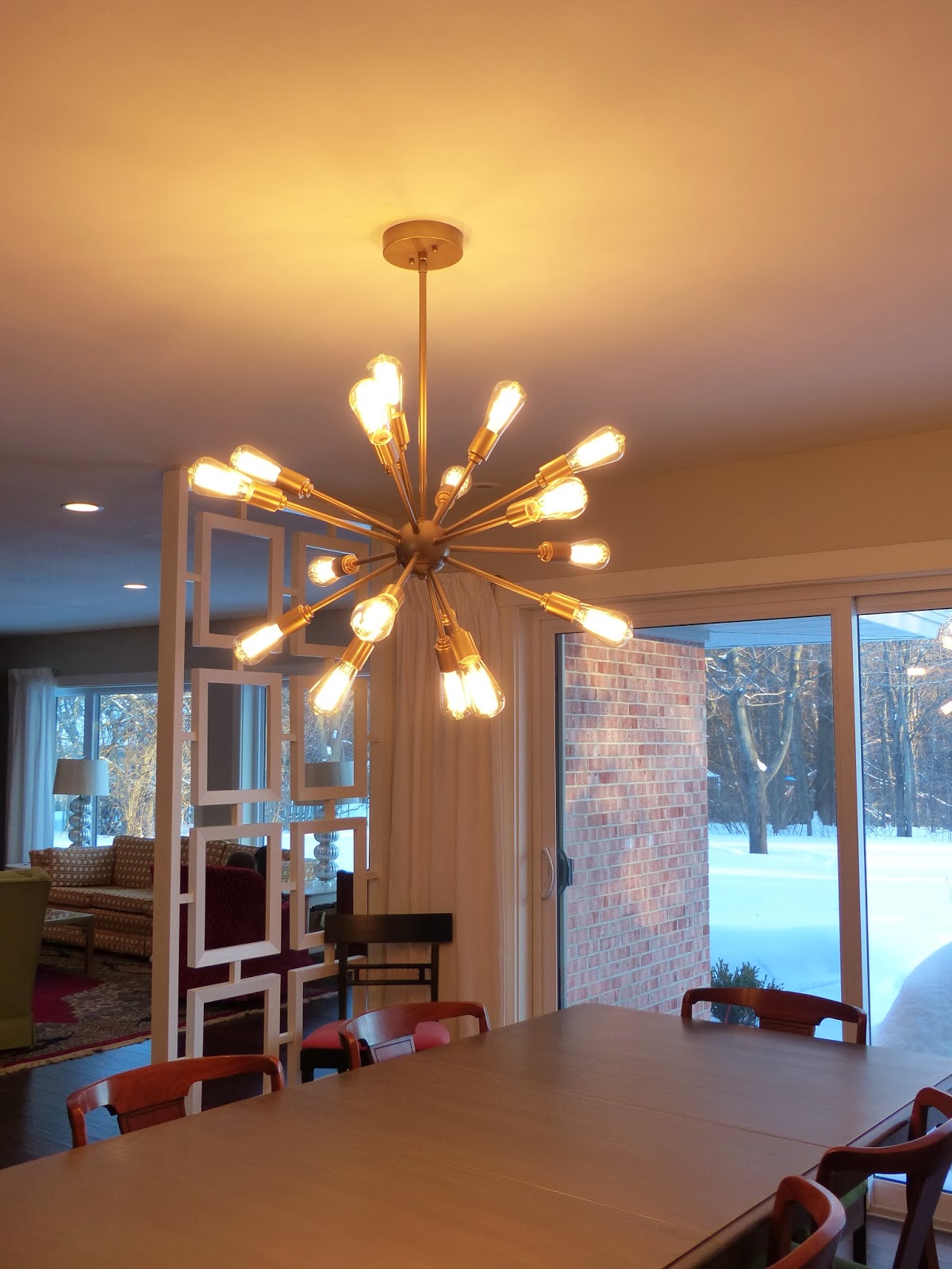 Orb Chandelier Lowes With Contemporary Dining Room Also Artwork
